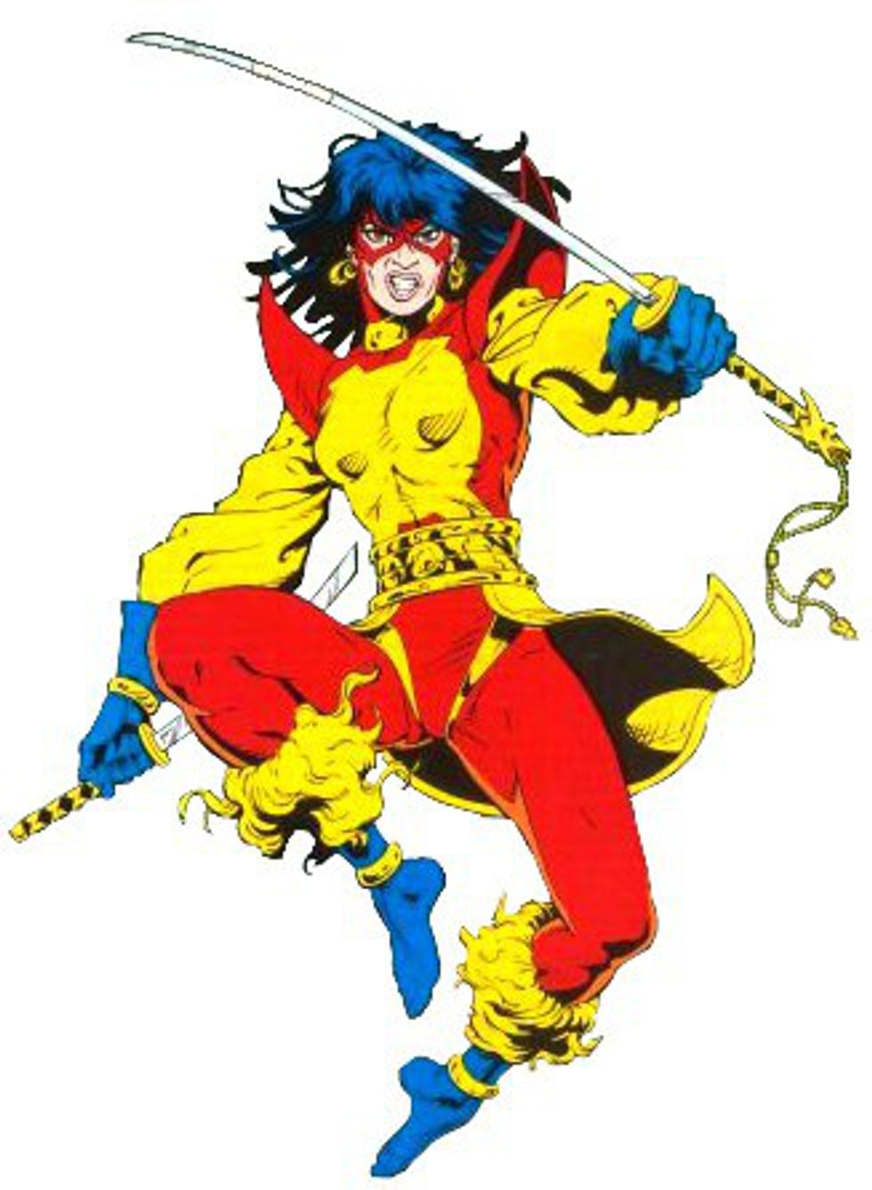 Tatsu Yamashiro, in case you don’t already know, debuted in “The Brave and Bold" No. 200 as a normal Japanese girl who happened to be proficient in martial arts. Two brothers fell in love with her, Maseo and Takeo, and both tried to win her hand in marriage. Tatsu chose Maseo, which led Takeo to join the Yakuza. Years later, Takeo returned, after Tatsu and Maseo built a family for themselves, and murdered her husband (his brother) with a mystical sword called the Soul Taker. Tatsu was able to disarm Takeo and take the Soul Taker for herself. Takeo set the house on fire and escaped while Tatsu Yamashiro tried to save her children, whom perished in the fire.