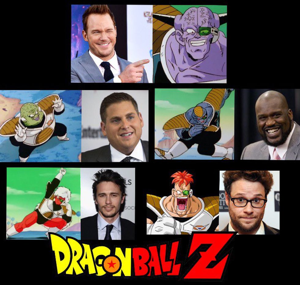 Above: Chris Pratt as Captain Ginyu, Jonah Hill as Kibit, James Franco as Jeice, Shaquille O'Neal as Burter, and Seth Rogen as Rcoome.