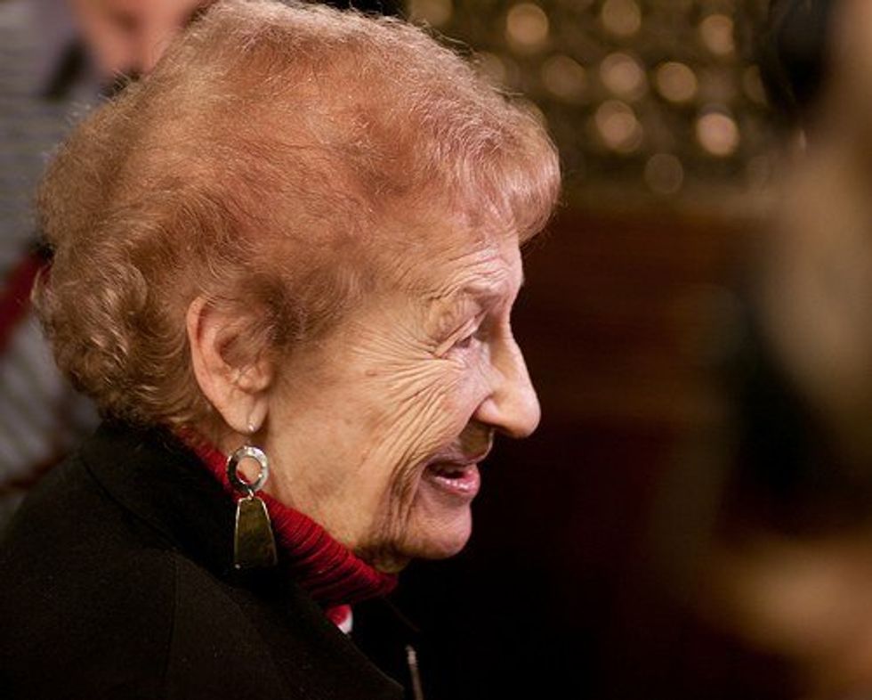 Meet Esther Jonas Bauer. Born to a Jewish mother and father in Karolinenstrabe, Germany, she is one of the few remaining Holocaust survivors alive today. Esther resides in New York, but she has devoted much of her life to visiting various college campuses, institutions and groups all over the world, to speak about her horrific, personal experiences from the Holocaust. Although the topic was quite heavy, during her talk at WSU, Esther managed to keep the audience engaged, attentive, and above all, laughing. For someone who has been through h*ll and back you'd never know it, mainly because of her quick wit, spicy personality, and poise. During the hour-long program, she managed to not only continue smiling, but keep the audience smiling as well.