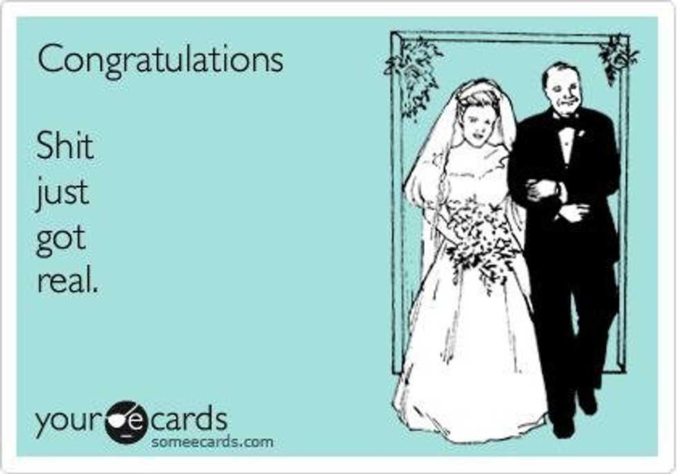 I equate tears with sadness. I believe that happy tears are a myth. Marriage is seen as every little girl's dream. Every little girl dreams of her perfect wedding day. An all-white gown adorned in lace and bows, a beautiful winding forest path that leads to a golden arc with the man of her dreams waiting under patiently for her arrival, and every single detail planned and manicured to the tee. The white doves to be released after the couples' kiss, the family in the front row, and the photographer, of course.