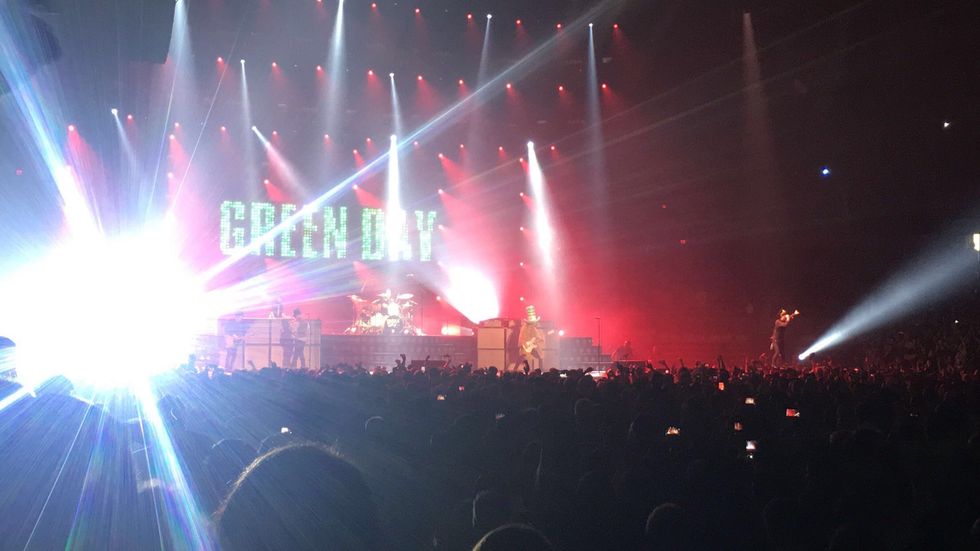 This call for compassion and acceptance was at the forefront of the Against Me!/Green Day concert, with Green Day frontman Billie Joe Armstrong taking several breaks during interludes of songs to spread the message of "No racism, no sexism, no homophobia." The most prominent memory I have of these interludes was at one point, fairly early on in the show, where all the lights went out but one spotlight being directed by Billie Joe. As he spoke, a fan in the balcony displayed the transgender flag, and they held the spotlight on it for part of his speech.