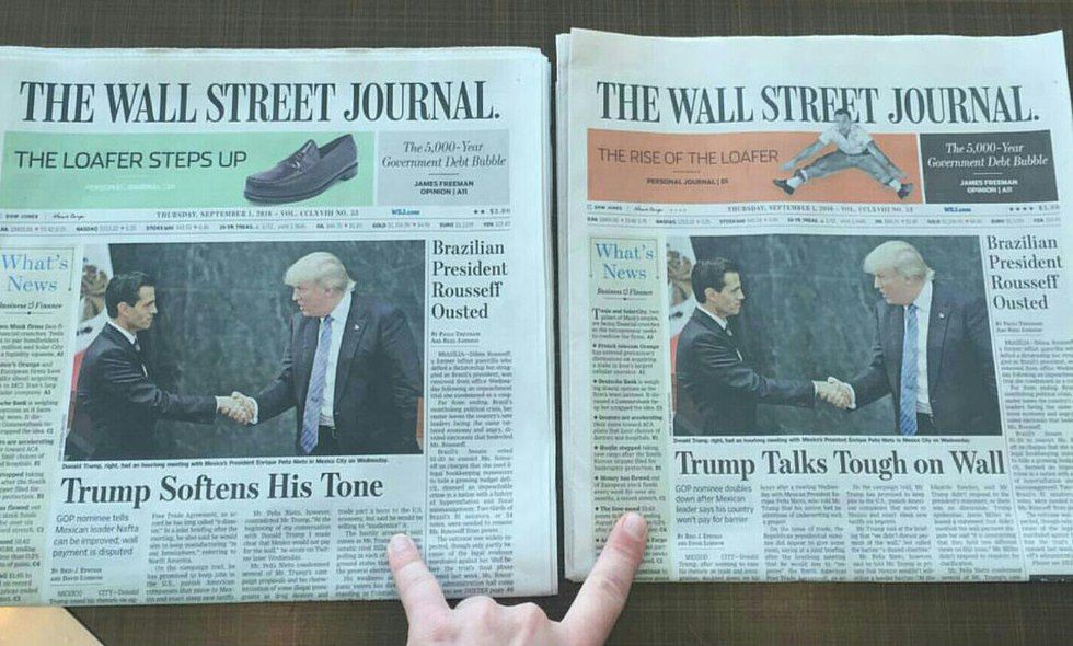Now you may be thinking, "Well, that's not true for me." Kudos to you if you think you're up to date on everything happening in the world. But ask yourself, are you just watching the same two to three news channels every day? Giving you the same biased information day in and day out? Are you reading the same tabloids and believing what they say? A prime example is of the Wall Street Journal below. Same article, different titles.