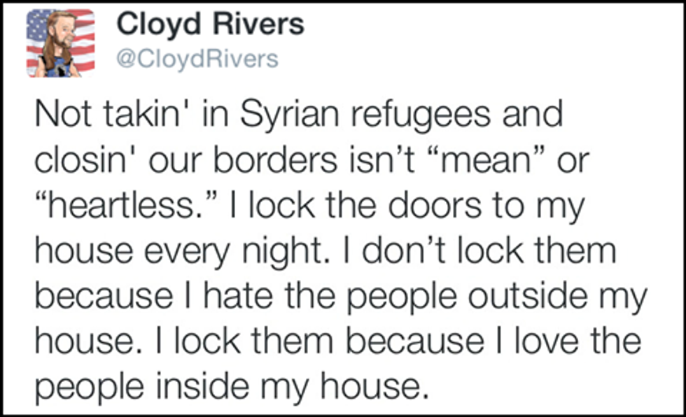 I understand his point of view, yet at the same time, closing borders is nowhere near the same as closing and locking the doors to our homes. That's almost like saying Donald Trump loves each and everyone that lives in the United States and that he wants to do the very best for them. Well, I'm sorry to shatter your view of him, but he is not God. And I guarantee he does not love each and every one of us within the borders of the United States because he made this ban. He's discriminating, minimizing opportunities for freedom, for life.