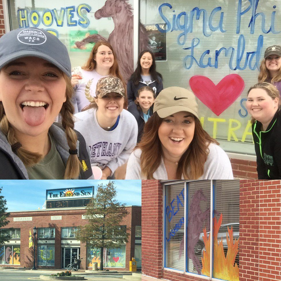 For larger universities, like OSU or OU, Homecoming preparations begin in August. But for smaller universities like UCO, where I go to school, we typically begin prepping in late September/early October. There is so much more to Homecoming than meets the eye.It isn't just floats, there are brag boards--giant plywood signs detailing an organization's history and achievements on campus, phrigs-- which are basically plain topsheets that have been painted with designs and saying such as "Phi Lamb loves UCO Football" or other things like that. The phrigs, brag boards, and floats all take time, energy, and lots of creativity because who wants to have the same design as another sorority? And then there are your competitions.