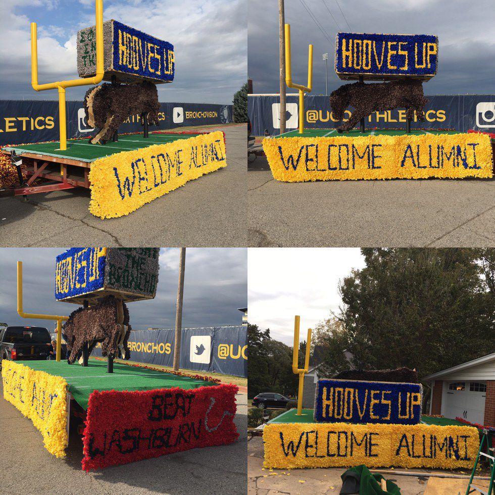 Some of the Homecoming competitions and activities at UCO include dodgeball (we won 1st place last year :) and 3rd this year), and Day of Service (we got to help decorate campus again this year and place the Blue, Gold, and White flags at Broncho Lake).