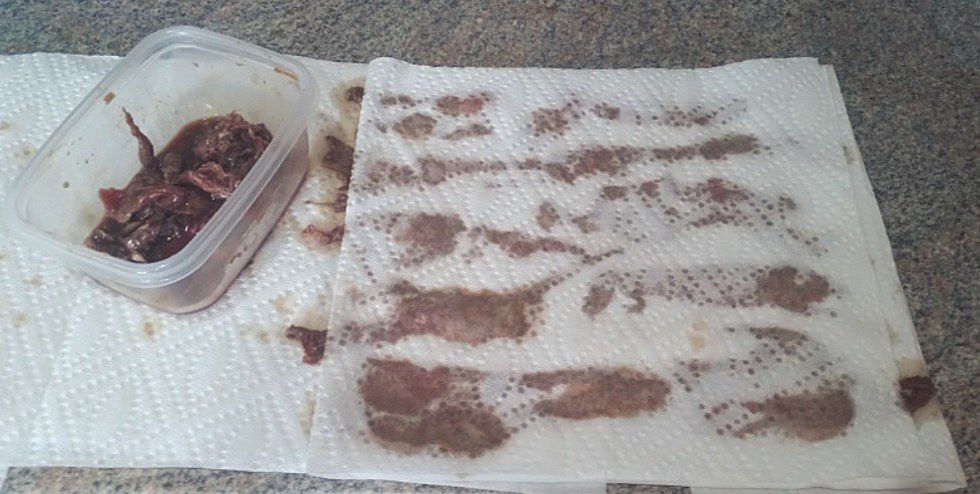 4. Put another paper towel over the beef and press down, trying to get as much moisture out of the meat as you can. This will speed up the cooking time significantly. I like to peel the towel backward slowly so the beef doesn't stick to the upper paper towel.