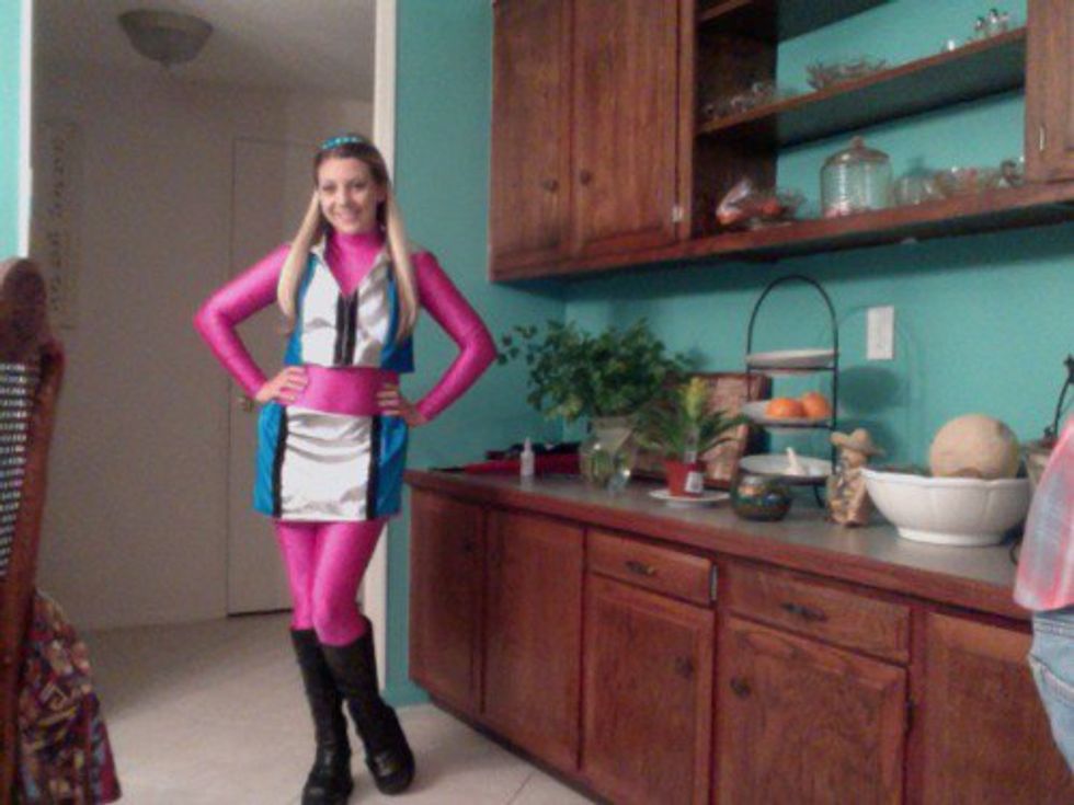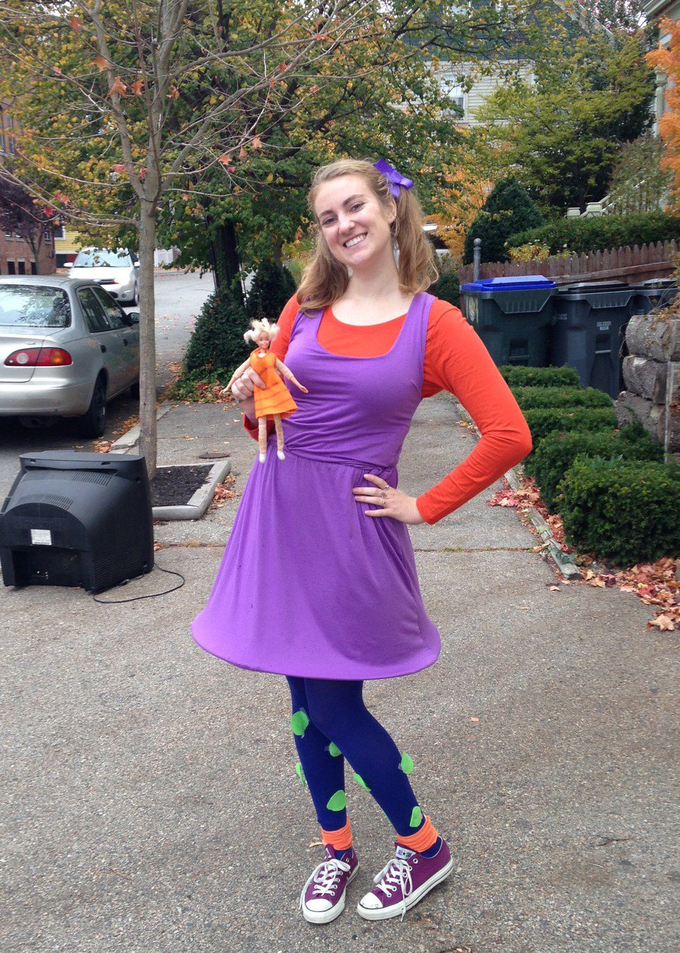 This one might take a little more time than the ones above just because trying to find leggings and shirt that match almost perfectly might be hard. But after you accomplish this task, you just need a bright vest and silver skirt. This costume will absolutely ensure a stellar time.