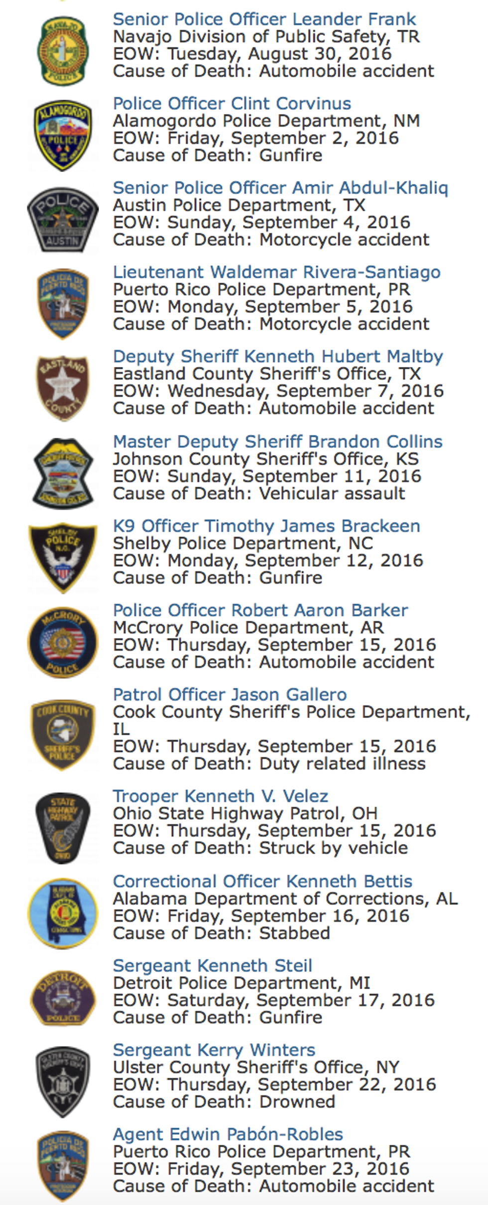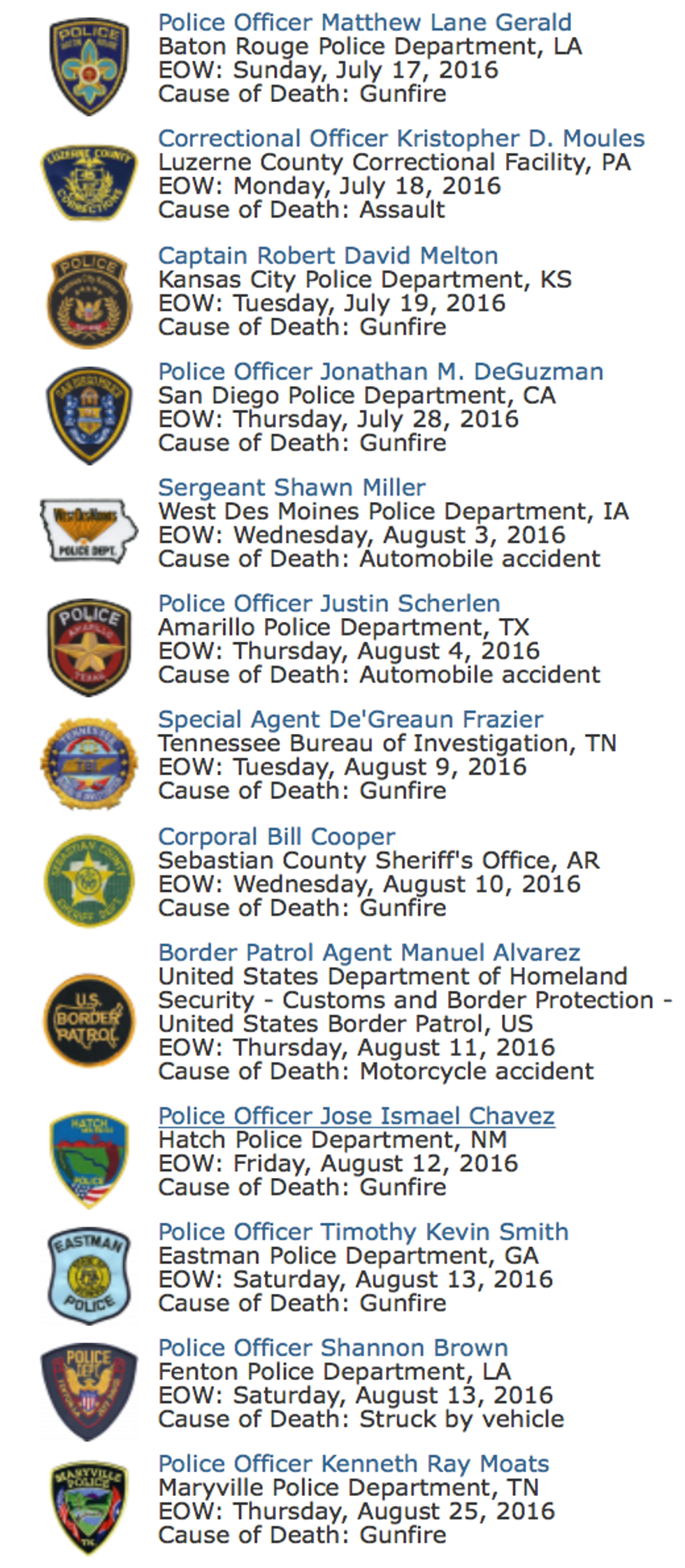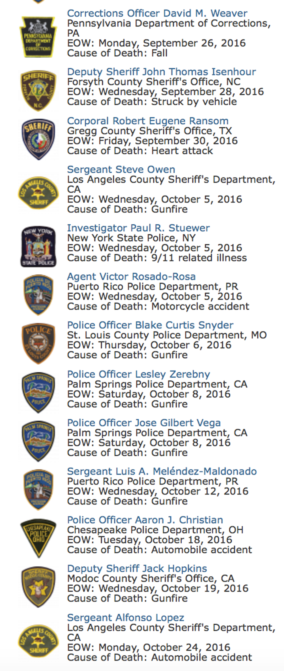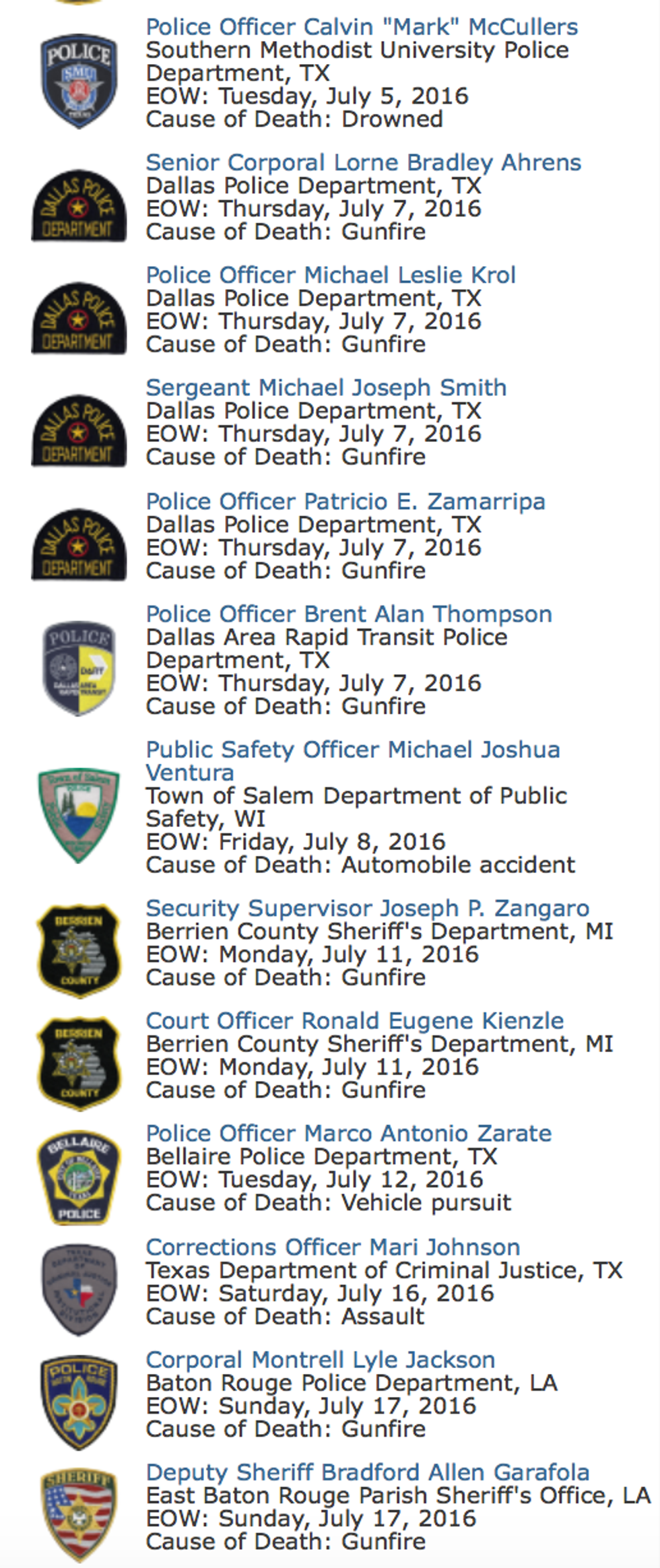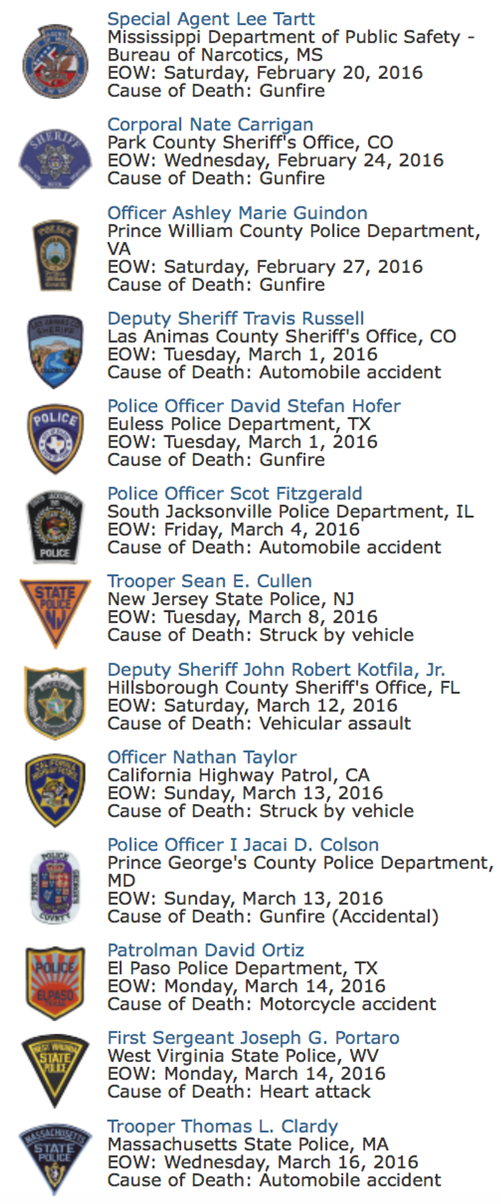 Here are the 136 brave men and women that made the ultimate sacrifice as law enforcement officers. This list is courtesy of the Officer Down Memorial Page, I strongly suggest those reading check it out and consider donating to their cause. https://www.odmp.org