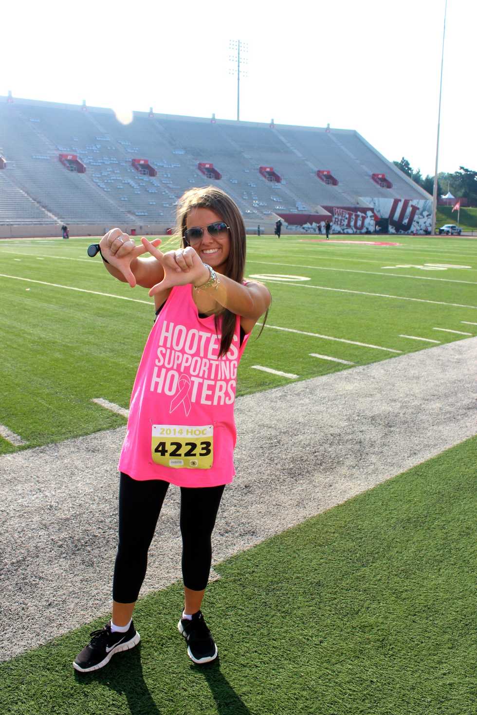 Every year, our chapter creates shirts that say "Hooters Support Hooters" in honor of Becs. We all wore the matching neon pink tanks and walked together. Some girls even decided to run. Not only did this year's Hoosiers Outrun Cancer hit home with Chi Omega, but also with Sigma Delta Tau.