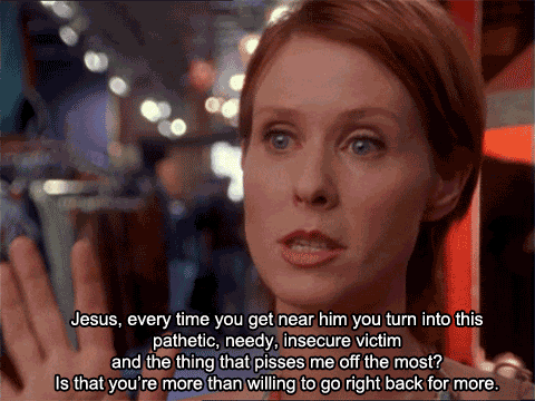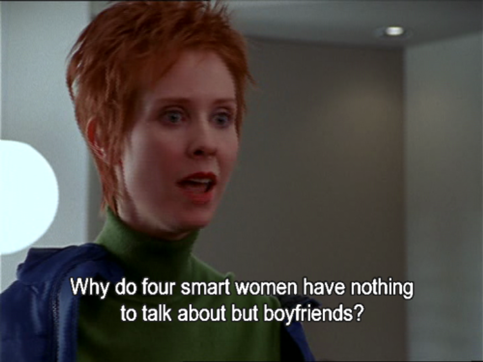 Something that no one wants to admit is that Miranda is the most relatable. She works hard, loves to eat, isn't optimistic 100 percent of the time, cares about more than just men, and is always there for her friends.