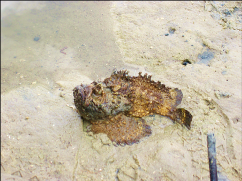 2. It lies in the sand on beaches pretending to be a rock, just waiting for some poor soul to come along and step on it (the fish can live out of water for up to 24 hours, look at this one just pretending to relax on the beach).