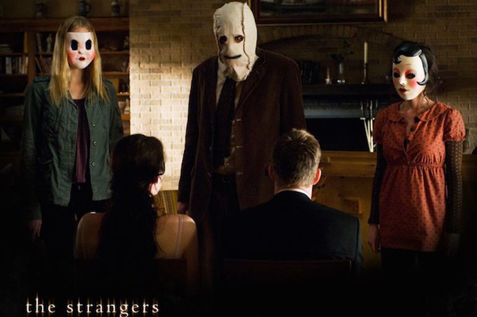 After returning from a wedding reception, a couple staying in an isolated vacation house receive a knock on the door in the mid-hours of the night. What ensues is a violent invasion by three strangers, their faces hidden behind masks. The couple finds themselves in a violent struggle, in which they go beyond what either of them thought capable in order to survive.