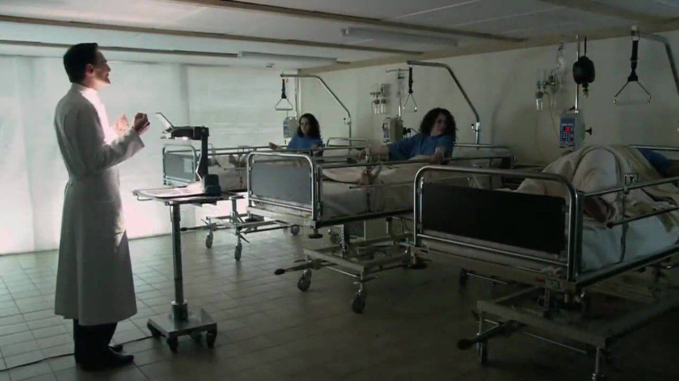 A mad scientist kidnaps and mutilates a trio of tourists in order to reassemble them into a human centipede, created by stitching their mouths to each others' rectums.