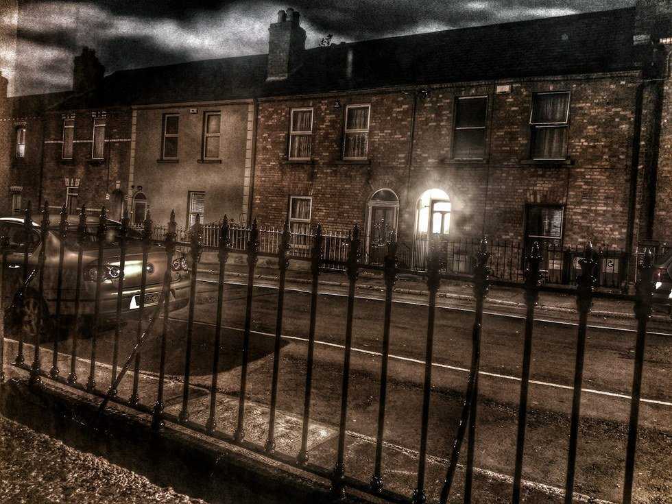 Sheryl quickly turned the light back on. There was nobody there. She completely faced the seemingly empty room. Taking shallow breaths, she flipped the light switch. The shadowy person was still there, staring at her. When the light came back, the person seemed to vanish. She was about to flip the switch again when someone tapped her on the shoulder. Sheryl whirled around to see a woman standing behind her, smiling.