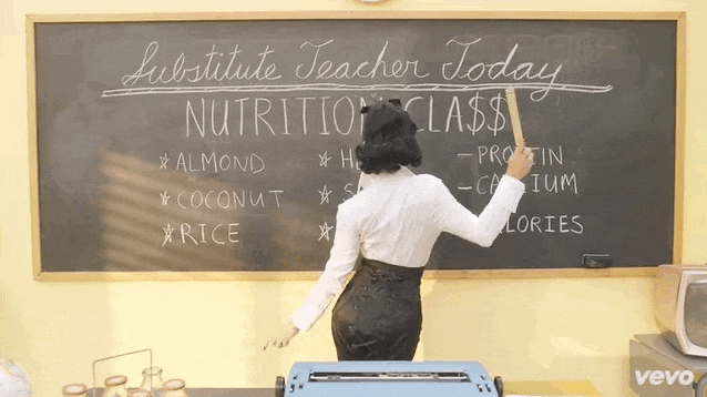 There is a point in the video where Fergie is apparently instructing a class on nutrition, well, less nutrition and more a list of different kinds of milks plus the word "calories." That's really all you need to know, right?
