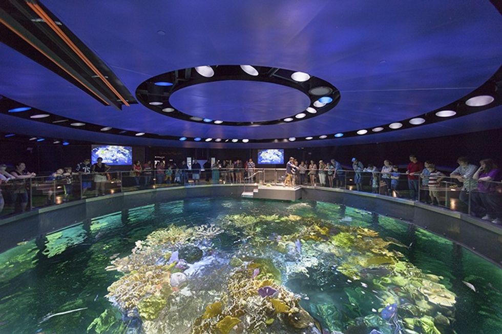 It's beautiful design and layout gives everyone the feeling of being a part of the aquarium. You can look down and up into tons of fish, sharks, and other sea creatures. There is even an outdoor seal exhibit and a petting zoo for children.