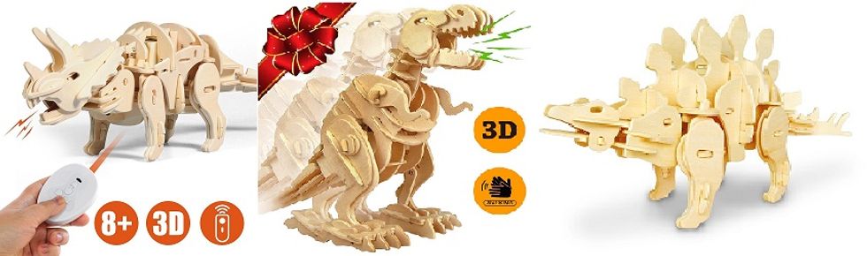 4. Wooden Dinosaur 3D Puzzle Mini Stegosaurus, Triceratops, T-Rex Dinosaur 3D Puzzle Walking Robot