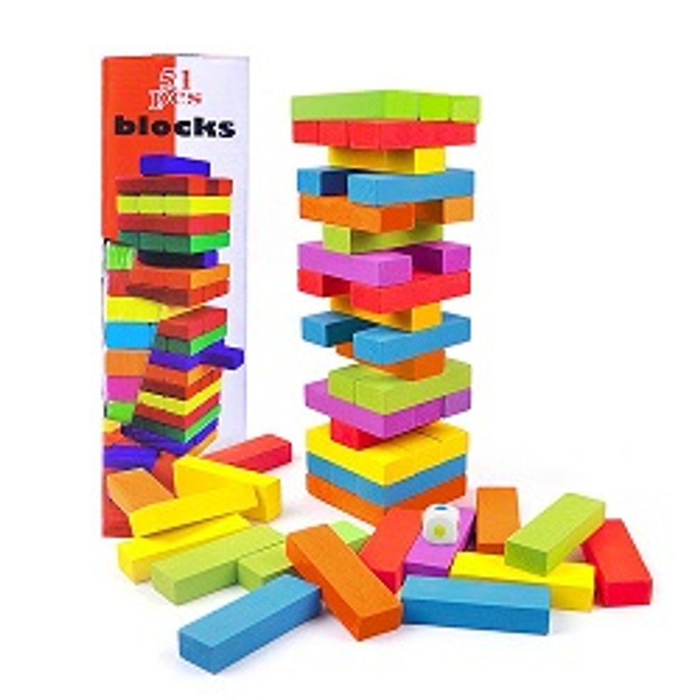 5. Meland 51 PCS Colorful Wooden Building Blocks Board Game
