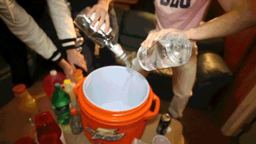 2. And you get inside, walk downstairs to more sober-looking males standing behind a giant piece of wood giving out colorful drinks from a Gatorade container. House party... or frat?