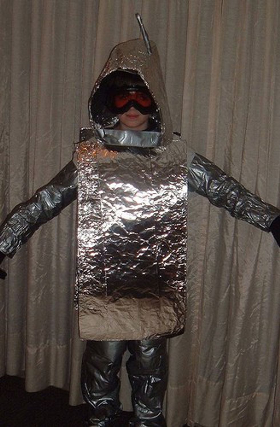 3. Find the tinfoil and do the same thing as the mummy. If you're feeling extra creative add a cardboard box that you can fit into! You could even make a tinfoil hat and you'll be the coolest robot walking through the streets.