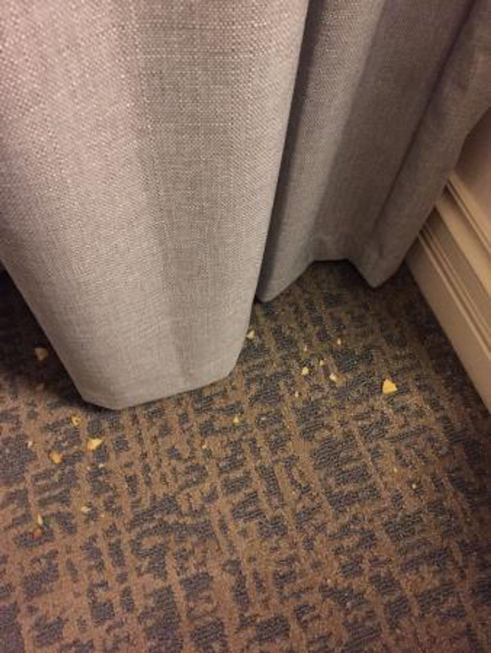 Please, please don't let this happen! Crumbs and food smashed into the carpet means a more thorough vacuuming, which eats up more time. Please just pick up anything you drop before it gets smashed into the carpet.