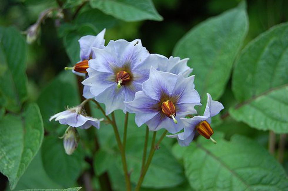 Take a potato with lots of eyes, stick a few toothpicks in it, and suspend it over a jar of water so it dips just below the surface of the liquid. With luck and some bright sunlight, you'll get a few vines which, in time, sport surprisingly beautiful flowers. Try different kinds of potatoes for different colors of flowers.