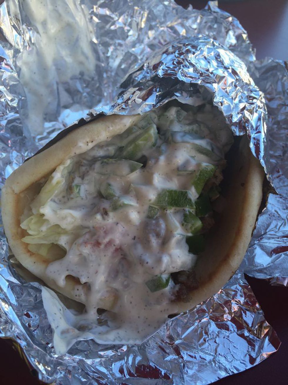 Your options are simple: chicken/falafel/gyro over rice or a sandwich with the same options. You can also get sides of fries and falafel among other things and they even have individually wrapped baklava for dessert. I suggest ordering one plate, one sandwich, and the baklava and, when they tell you to say "when" for the sauce, don't ever say when. Let them drown it and add just a little bit of the spicy sauce just to mix things up. I don't even want to know what my caloric intake was.