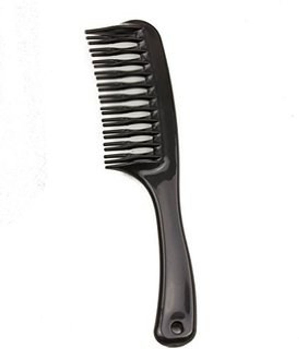 I switch between a rat tail comb to define my parts and a detangler comb to work through the kinks if needed. Combs are sold at pretty much any store you can walk into, needless to say.