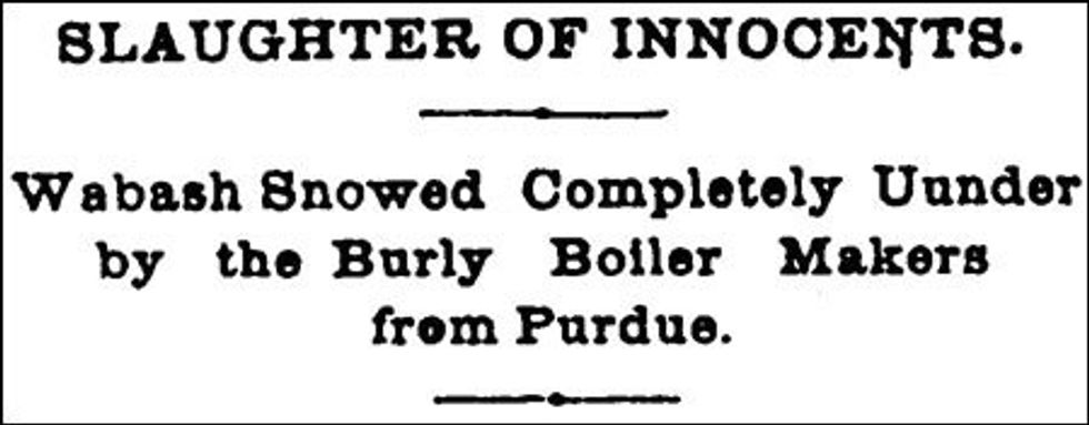 Although Purdue University was founded in 1869, we didn't have a football team until 1887. Since it was a rather up-and-coming organization for us, we only occasionally played against surrounding teams, like Butler, DePauw, and Wabash. We weren't necessarily the best team around until 1891, when we finally had a winning record. One of the more impactful games of this season was against Wabash College, as Purdue defeated the liberal arts school 44-0.