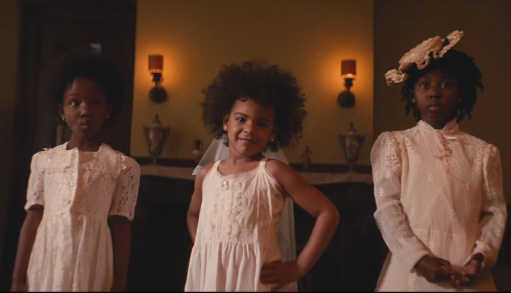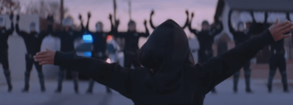 As if Yoncé hadn't already killed it with the image of the cop car sinking, we also see the strong image of a black boy dancing in front of a line of police officers and then the words "Stop shooting us" tagged on a wall. This black boy dancing in his black hoody not only takes us back to Trayvon Martin, but we also see the police officers putting their hands up, which directly relates back to Ferguson, as if they are being threatened with his dancing. After we see the officers with their hands up, the shot goes over to the wall. The message there is very obvious, but Beyoncé seems to keep bringing up these things that have happened in more recent black history almost as if to remind us that the efforts made during the Black Lives Matter movement and the tragedies that have occurred will live on and be remembered for the next Black History Months to come.