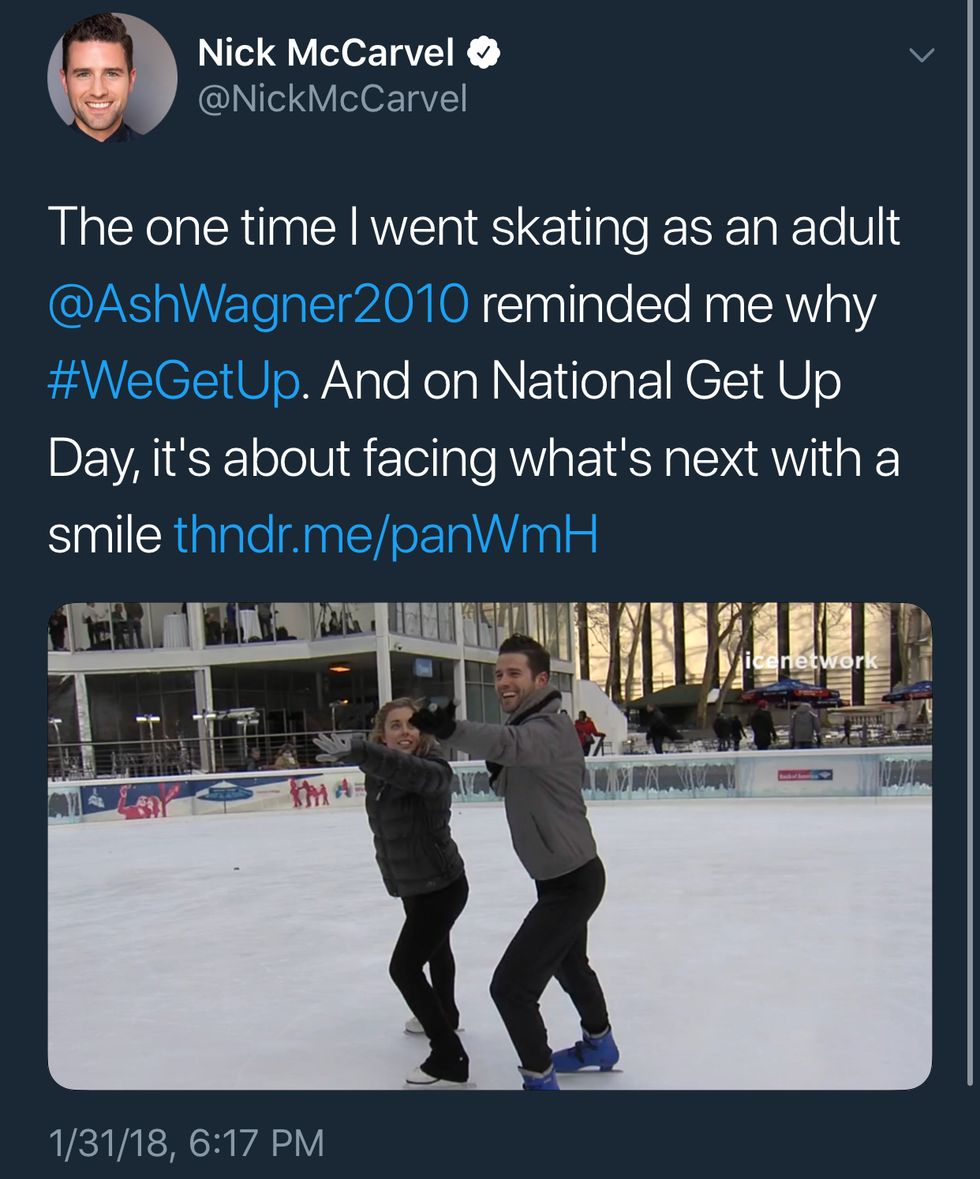 On February first, figure skaters celebrate National Get Up Day by tweeting and posting their motivational stories about a time they have fallen or struggled with something, and how they overcame it and got up.
