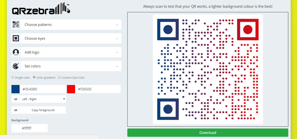 - You can customize the patterns, select different eyes, add image or logo, and set colours so that your QR code complements your company, product, or service.