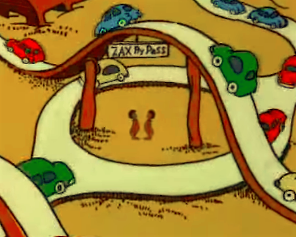 Both of the Zax hold their promises, and eventually so much time passes that a highway is built around them.