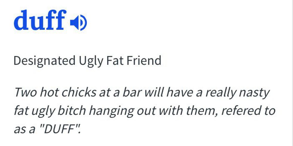 Urban Dictionary defines DUFF as "the designated ugly fat friend." And, if you truly think about it, every group has one. There is always that one person who feels inadequate. There is always that one person that feels uglier, fatter, poorer, and many other adjectives about themselves. And its true. There is always that person. But the reason that is is because every single person in a group of friends feels that they are the DUFF. Everyone.