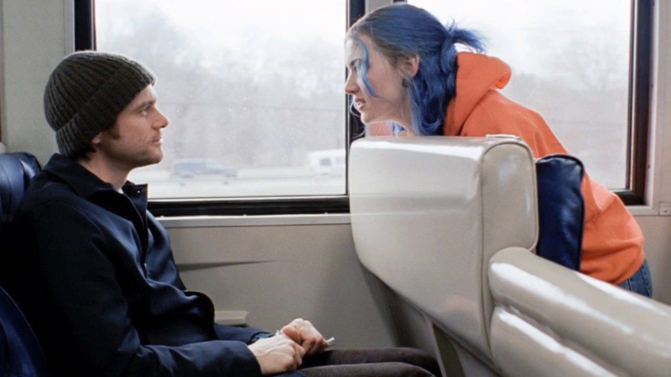The story centers around two people, Joel (Jim Carrey) and Clementine (Kate Winslet), who begin a relationship after meeting on a train. However, unbeknownst to either of them, they were past lovers who, after experiencing their relationship fall apart, opted to have specialists remove the memories they each had of one another. The story jumps back to the past and centers on Joel who becomes trapped in his own mind as technicians work to get rid of the many memories he had shared with Clementine. As the viewer travels through Joel's memories with him, they witness his relationship with Clementine ending on volatile terms. However, as Joel journies even further down memory lane, the viewer is shown that despite the arguments, the duo shared an undeniably strong bond of love and trust. Joel sees the loving connection they once shared and immediately regrets his decision to have her erased from his mind, but it soon becomes too late.