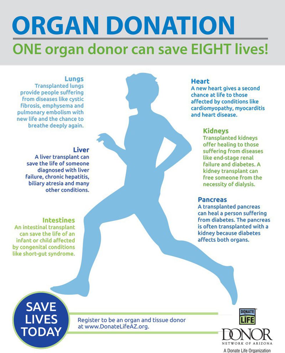 At this point, what's holding you back? 21 people die everyday waiting for a donor. By becoming a registered organ donor, you can personally save 8 lives. You can also improve up to 50 lives with your tissue. So when you go to get your license renewed, think twice when they ask you: “Would you like to be an organ donor?”