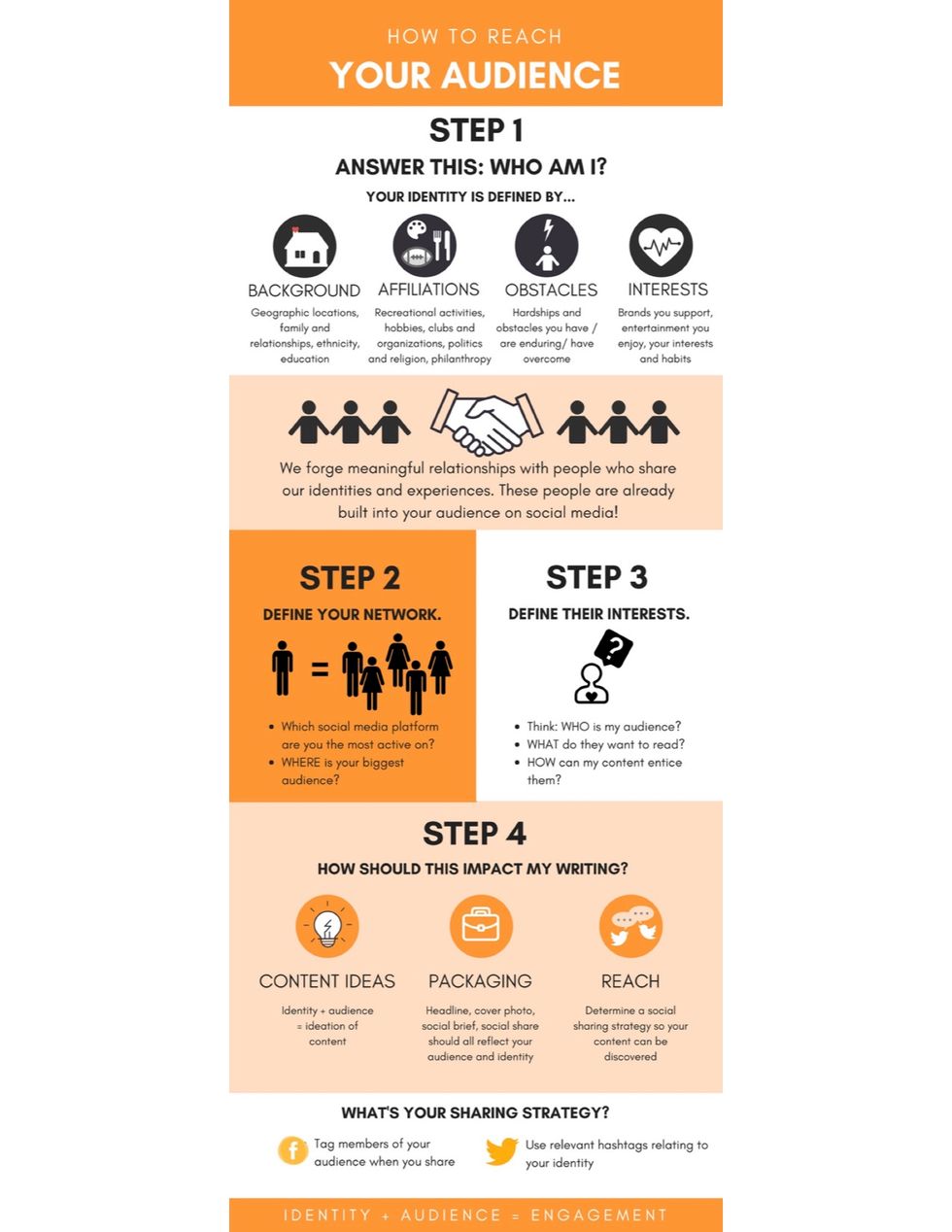 Second, when you’re writing a piece of content, identify if there’s a specific audience that you’re trying to reach.