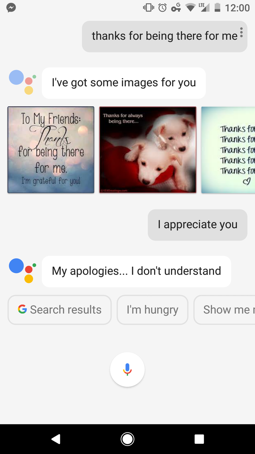 Google Assistant is not like this though. She’s smart, fast, and best of all, useful. No longer is speech recognition a gimmick. It’s actually a powerful feature and tool to utilize. When I’m getting ready in the morning, at my closet, I ask, “Okay Google, what’s the weather like today?”, to which my phone recognizes my specific voice, unlocks from across the room, searches up the weather, and reports it back to me, “Fairly sunny with a high of 65.” To which I go, “Thanks!”, and she says, “You’re welcome.” D’aww, that makes me happy.
