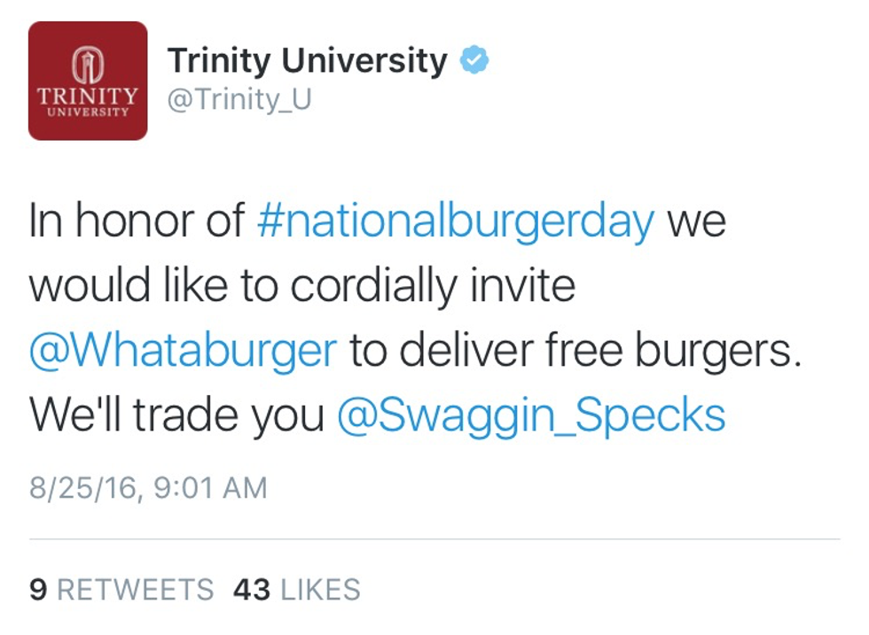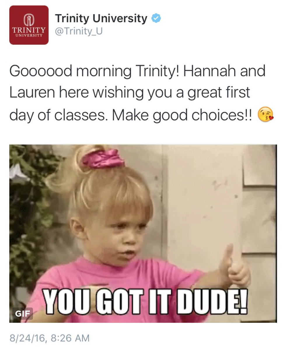 So, how exactly did my roommate and I gain full control over Trinity University’s Twitter account anyway? It’s still a shock to me.