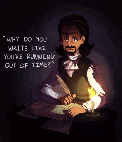 Specifically in that way, the songs of Hamilton became a rallying cry for me at the darkest parts of my senior year--the nights when I didn't have the energy to keep studying for exams or writing for looming deadlines. The image of the embattled first Treasury Secretary, "writing at night like he's running out of time,", sustained me and drove me to keep going, to keep writing.