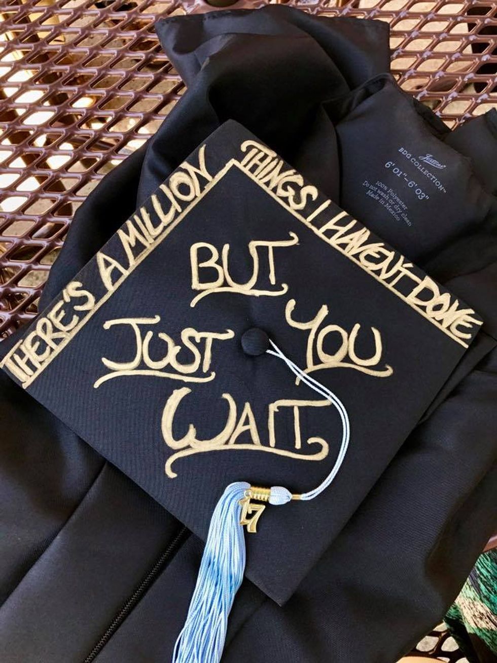 The desperate, clawing spirit of the man who was "just like his country--young, scrappy, and hungry" and who would "not throw away his shot" inspired me to push past my exhaustion, anxiety, and my depression. I truly don't exaggerate when I say that Hamilton saved me in my senior year. My struggle to power through and make it to graduation would have been all the harder for me if I hadn't had Lin-Manual Miranda's music to serve as my anthem, fueling me through to the finish line. Of course, in spite of all my fears, I did in fact make it to graduation--so it only felt right to decorate my cap appropriately: