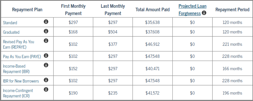 Now that we have some of the terminology out of the way let’s move on to federal programs loans. Student Loans is an online loan information source that has compiled a calculator that helps you better understand the world that is student loans. Below I calculated my pre-interest loan to help you get a better idea of the following federal programs.