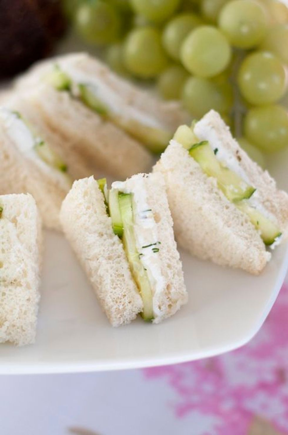 I typically like to choose finger sandwiches because they’re easy to make, yummy, and filling. When throwing a more formal event, I’ll make kobe meatballs, sushi rolls, or salads as well depending on the theme. Pinterest.com is my go-two when looking for finger sandwich recipes. Just make sure to always cut off the crusts!