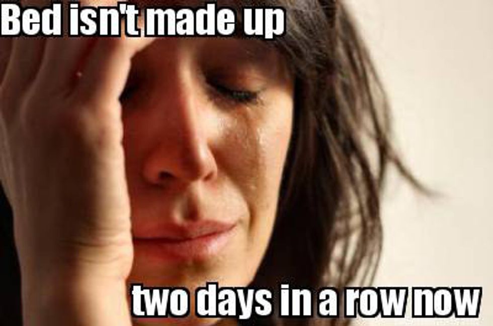 5. Getting annoyed when the bed isn't made.