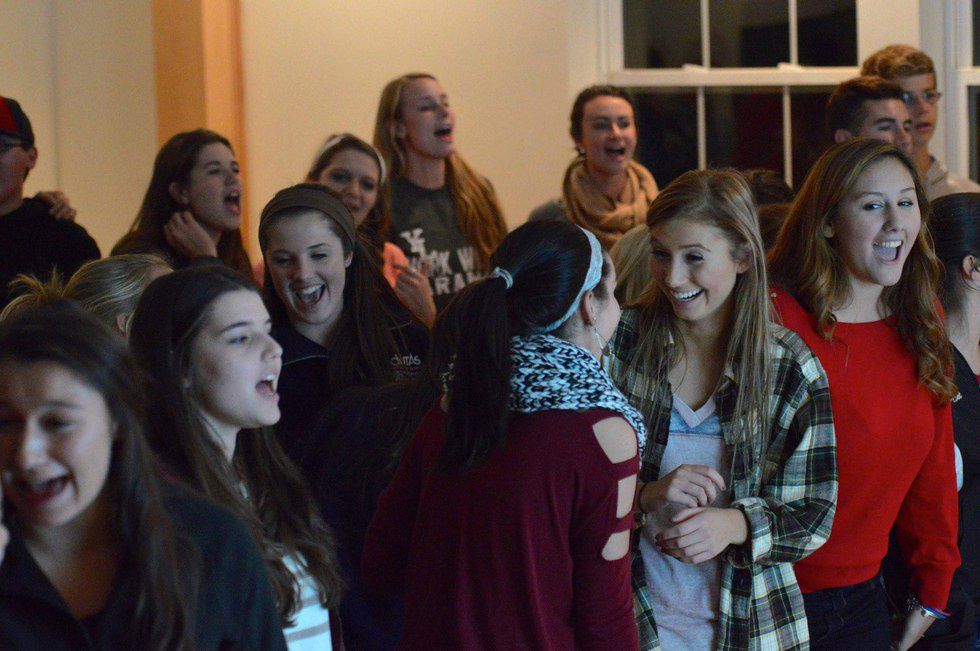 When the game was over, everyone ran over to one of the leaders who had already started to play a Taylor Swift song on his guitar. There were lyrics projected on the wall, and immediately everyone started screaming and dancing like madmen to "You Belong With Me." My friends and I sang and danced along, with not one worry that we looked stupid, because to be honest, everyone looked stupid. Between songs we would sit down to watch our leaders and upperclassmen perform in skits where they were dressed like barbies, truck drivers, and skiers. Twenty minutes before club ended, an upperclassmen stood up in front of everyone and kindly introduced one of the leaders. The leader started with a story about her childhood, and found a way to relate that to a story from the Bible. She ended club with a question for everyone to think about before the next club, which I would quickly learn is something she would do at the end of every club.