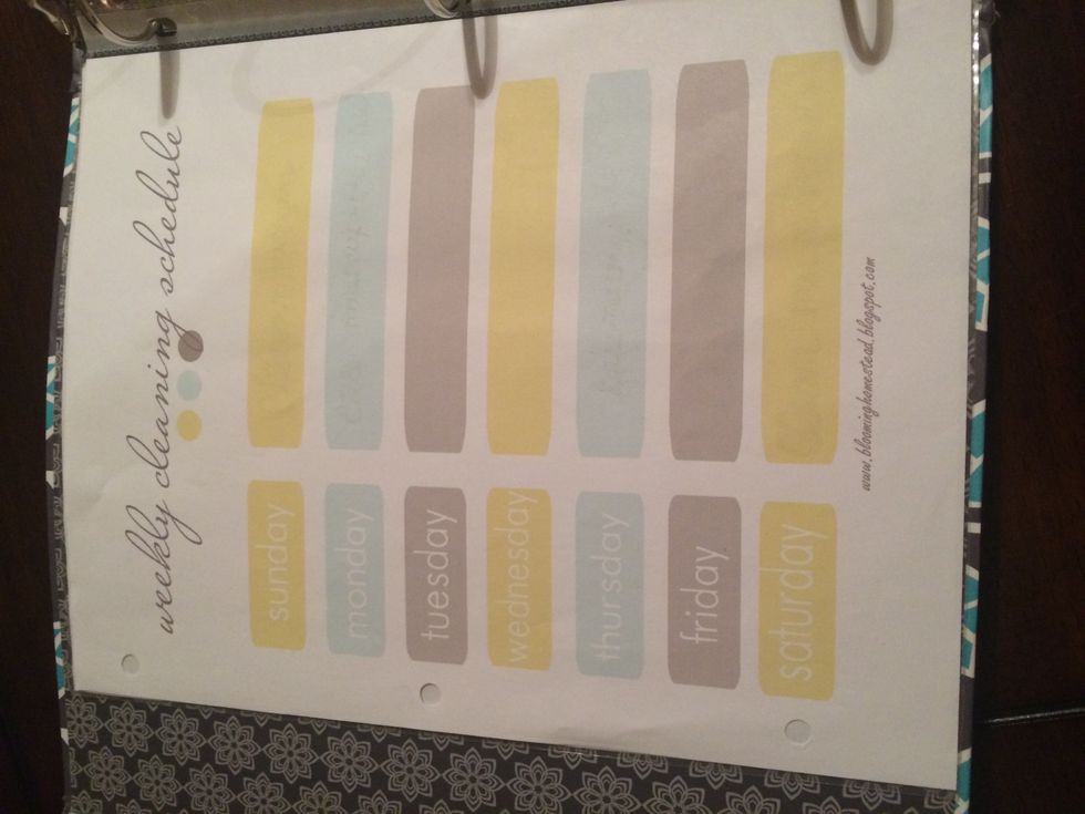 · Weekly cleaning schedule