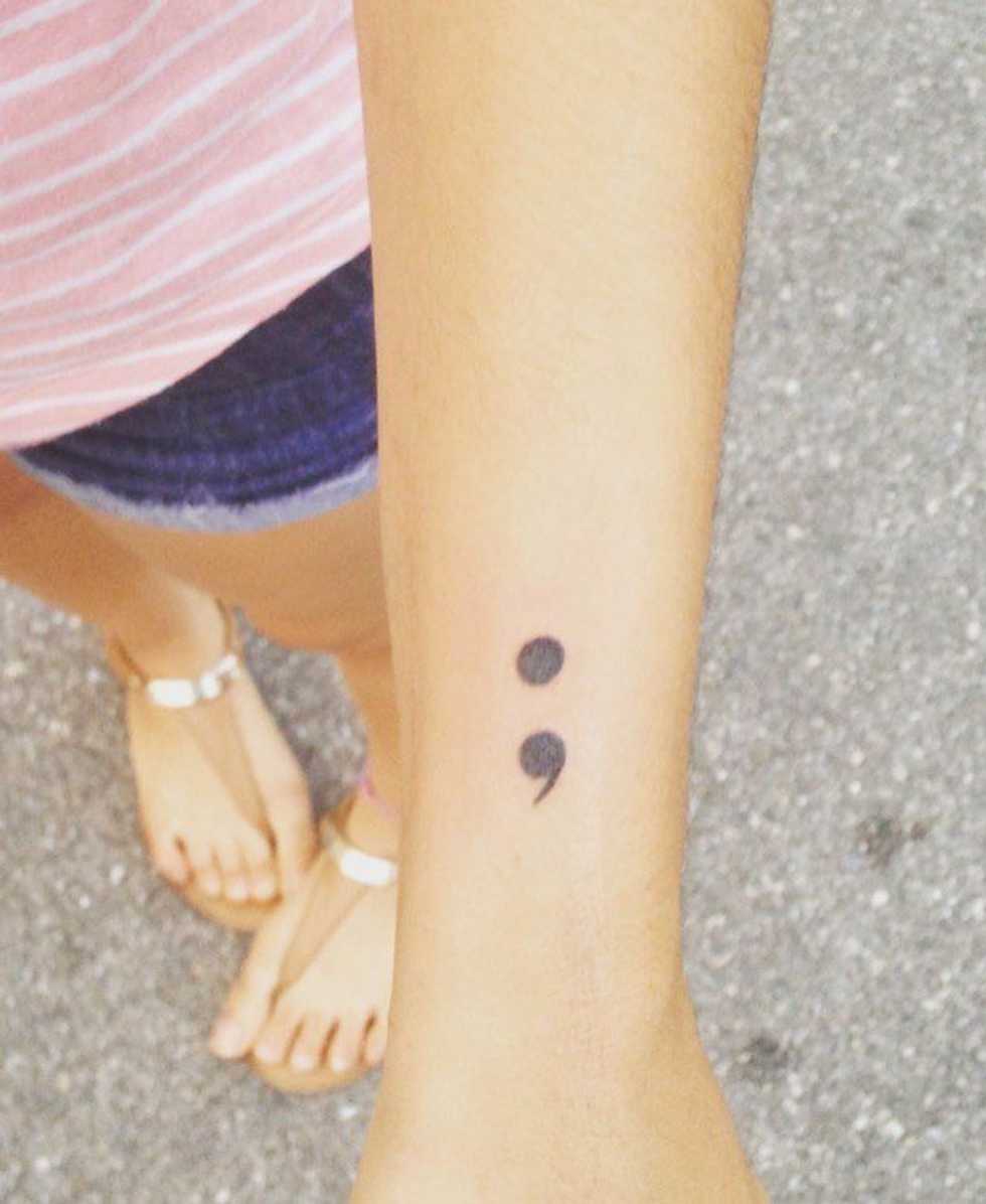 I got a tattoo recently that symbolized my win over my mental illness. It's a semicolon. It means that as an author, I have the power to end my sentence, but instead, I used a semicolon to keep it going. It's a metaphor for my life and the choice I made to keep it going.