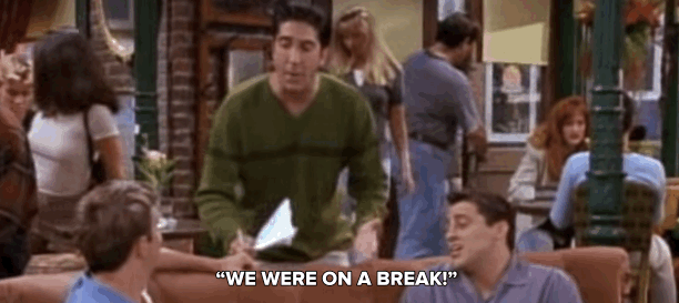 Although, some people believe Ross cheated on Rachel they were on a break, so that argument is invalid.