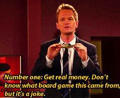So what you're saying, Barney, is that I cannot pay for college with Monopoly money? What kind of crap is that?!
