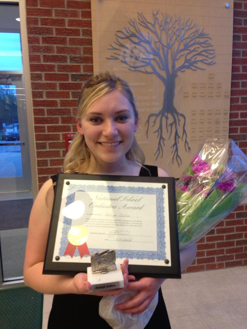 In 6th grade, I finally got my full sized violin! I still have her, my violin that I named Symphony, to this day. Mrs. Matthews remained as our orchestra director until early high school when she retired. I still remember feeling my heart sink at the news, getting tears in my eyes at the thought that she would no longer be our director. A student teacher that trained under her took over for a short time until we got another director, Mr. Starnes. I was still feeling apprehensive about having another director, especially since I still missed Mrs. Matthews. However, Mr. Starnes would become one of the most influential people in my life. Through his help and guidance, I was given the chance to spread my wings and take flight with my trusty violin by my side. I soared to first chair violin my senior year of high school, and was granted solos in concerts. I even won the National School Orchestra Award at the end of senior year, which is the highest award a grade school orchestra student can win, and I ended up getting my name on a plaque that sits on display in the school. Not wanting to toot my own horn or anything, but I was feeling pretty darn proud of that accomplishment, and still do whenever I look back on it.